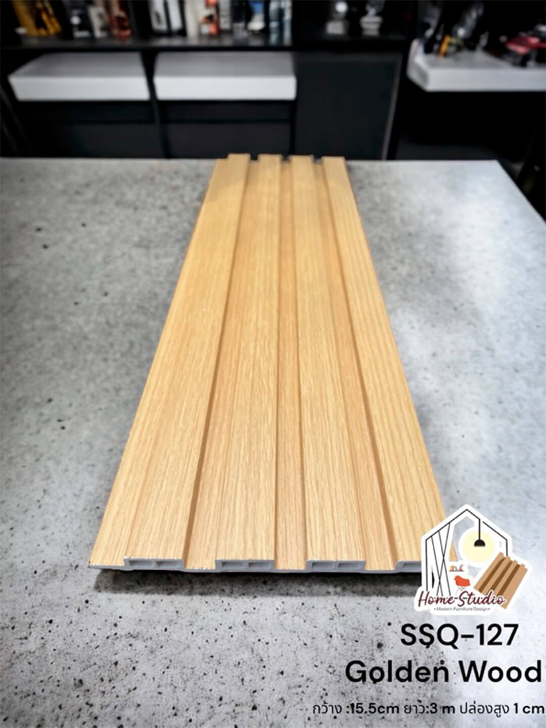 วัสดุชิ้นงาน WPC ไม่ใช่ PVC มีความเหนียว ทนทานกว่า ซึ่งเป็นการผสมผสานระหว่างไม้ และพาสติก ดูแลรักษาง่าย ไม่บิดงอ หรือหดตัว เลื่อยตัดได้ เจาะ ยึด ติดตั้งได้ เหนียว ทนทาน ไม่เปราะง่าย สวยเสมือนไม้จริง ไม่ต้องทาสี หมดปัญหาสีลอกล่อน ทนน้ำ หมดปัญหาการผุกร่อน ติดตั้งง่ายด้วยคลิปล๊อค สามารถทำได้ด้วยตนเอง เพียงให้กาวตะปู งานเสร็จรวดเร็ว งบไม่บานปลาย ประหยัดค่าใช้จ่าย และเวลา